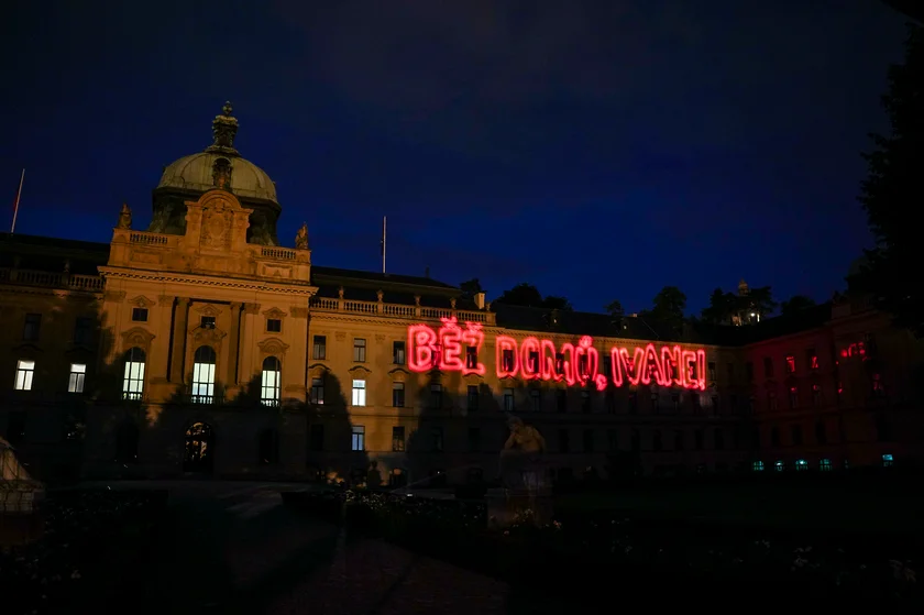 The Foundation for Ukraine prepared the projection displaying the words "Go home, Ivan! Go home, Russia!" and showed it from 9:30 p.m. until dawn. Several hundred people also gathered at dusk at the Russian embassy in Prague to commemorate the anniversary of the invasion and to express solidarity with Ukraine.