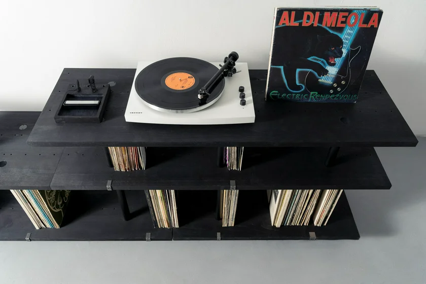 Jan Lechner, a 28-year-old product designer at the Academy of Arts, Architecture, and Design in Prague (UMPRUM), also found inspiration in the medium’s rich history and creative potential, creating a modular shelf designed to store vinyl.