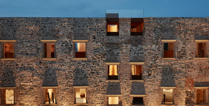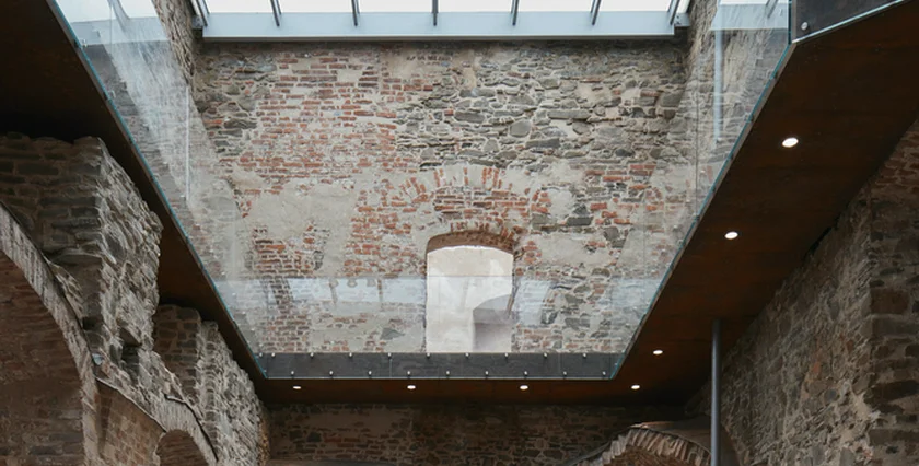 The reconstruction introduced striking contemporary elements, such as glass roofing, corten steel footbridges, and polished concrete pathways, seamlessly integrated with the castle’s historic fabric.