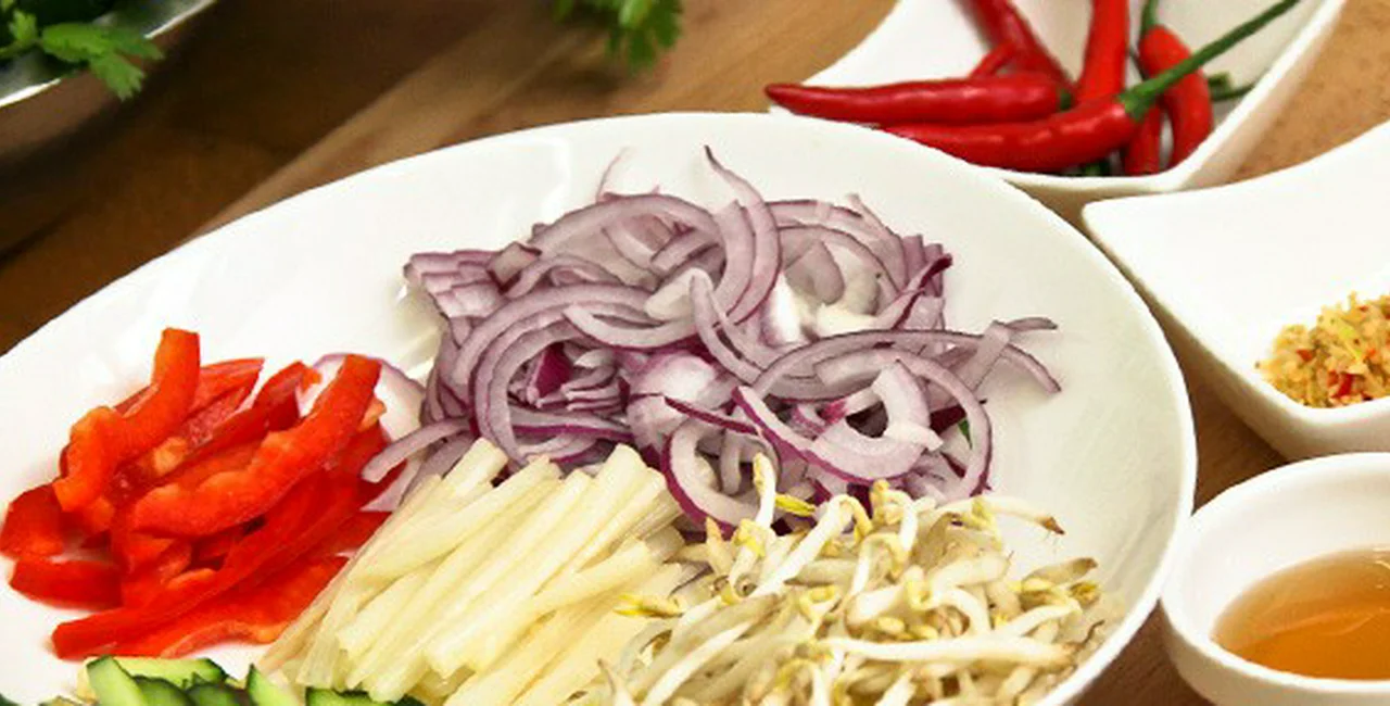 They are introducing their cooking with a three part meal made up of a newly popularized dish called, Bun dau mam tom – which he serves with traditional pho soup and a lotus root and shrimp salad. Ha Minh says the only special tools you need to make this dish are a grill, a pan and a good cook.