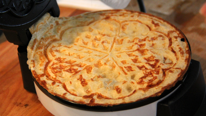 [ TIPS]: If you plan to use only savory waffle toppings, you may also toss a handful of chopped spinach into the batter for added color and flavor. For a sweeter waffle, you may add a little sugar to the batter, to taste. Toppings can be prepared in advance to save time.