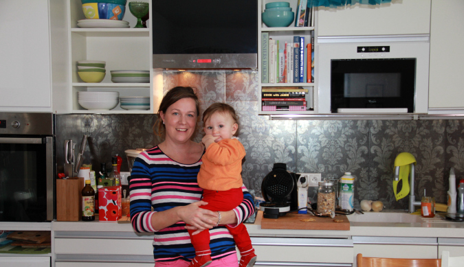 As I bite into a savory waffle piled with smoked salmon, red onion, chopped egg, parsley, and crème fraiche, I am certain that Swedish illustrator and designer Cecilia Book Nikolovski’s culinary creations are just as colorful as her Jinonice apartment. Today and every day, Cecilia cooks surrounded by a vivid tableau of her own drawings, Scandinavian design objects, and her 14-month-old daughter Mila’s toys.