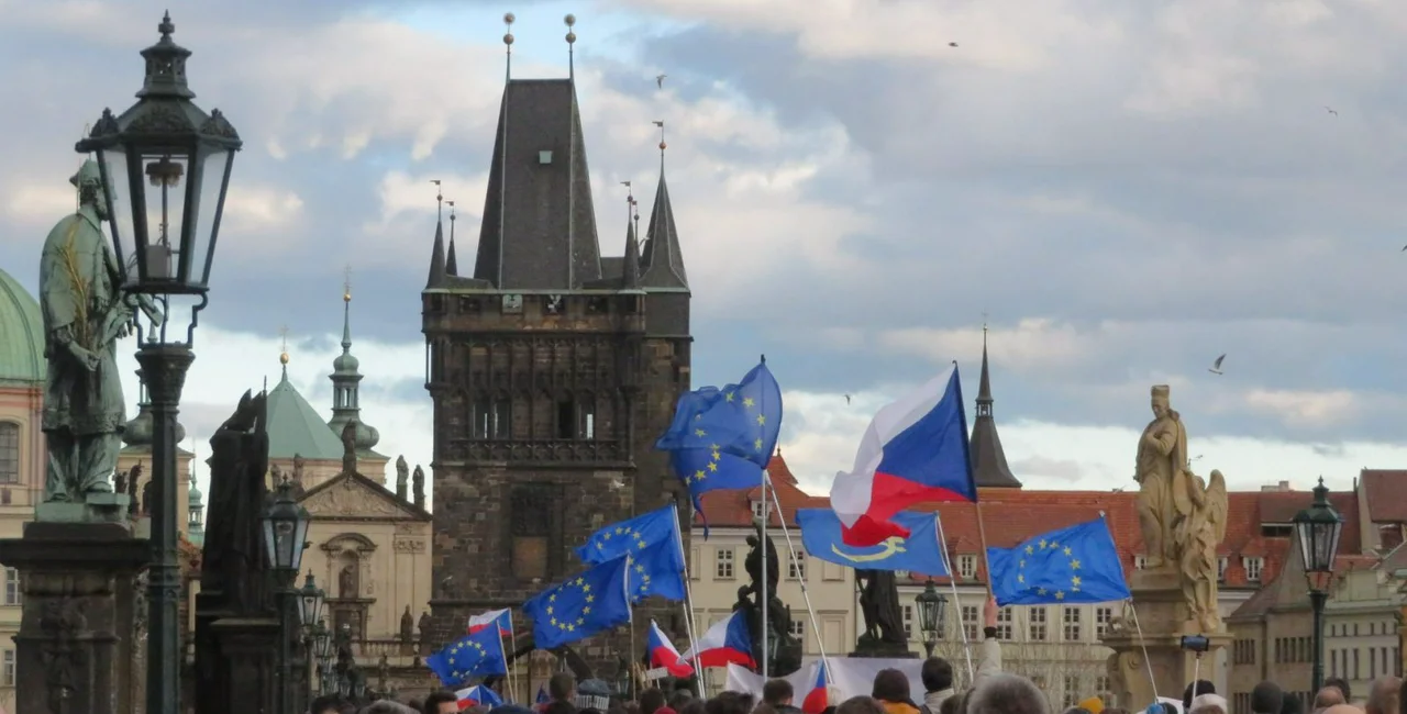 The marchers were also carrying slogans against Prime Minister Andrej Babis and the banners saying “Russian-Chinese Behaviour is Close to Totalitarianism,” “We Want to March on Road of EU, Not of Orban, Kaczynski” and “Media Do Not Belong to Politicians.”