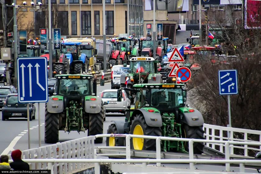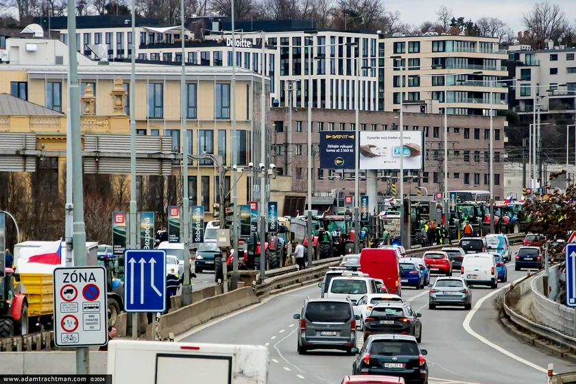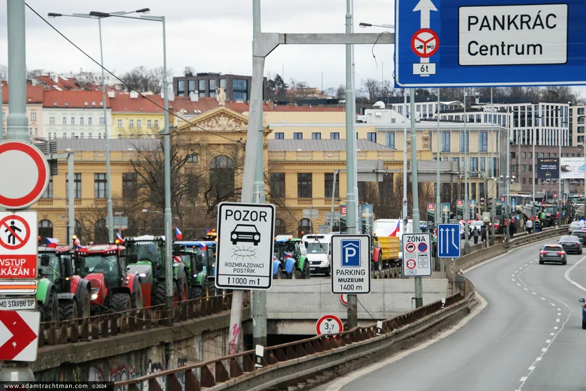 Organized by the Association of Independent Trade Unions and Agricultural and Food Workers Trade Union, the demonstration disrupted traffic in both directions by protestors halting their vehicles outside Prague’s main station Hlavní nádraží and the National Museum.