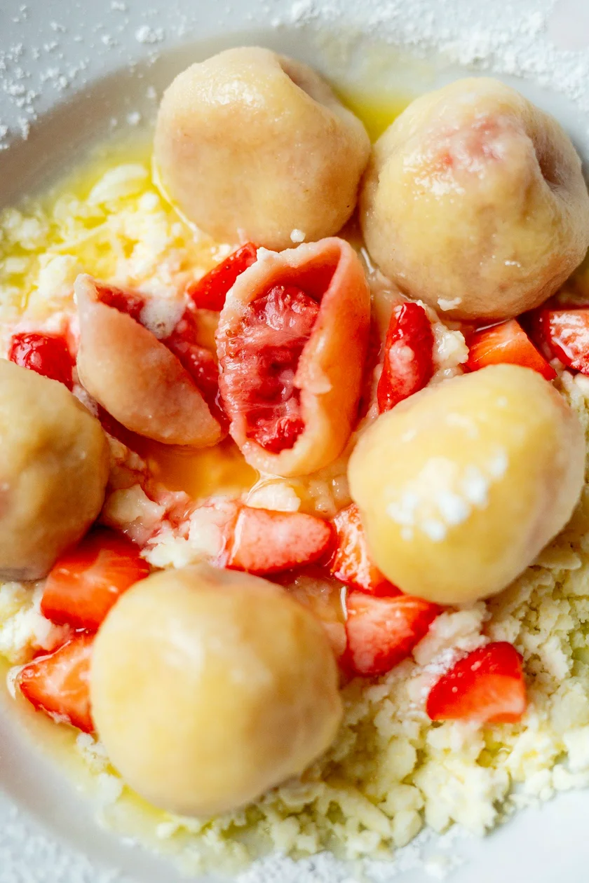 The fruit-dumpling tradition belongs to Austro-Hungarian cuisine, but has particularly strong roots in the Czech kitchen. Czech dumplings can be conjured from farmer's cheese, yeast, semolina, or potato dough. Just in time for strawberry season, Chef Martin Čáslavka from Prague's legendary Café Savoy told us his secrets for making dumplings that are bursting with fruit flavor.