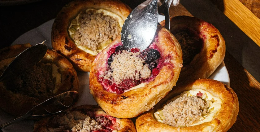 Did you know there are different varieties? The preparation and filling of koláč can vary according to the region from which they originate. We asked the experts from bustling Prague bakery Eska to share recipes for both traditional fruit-filled Bohemian koláč and its Moravian cousin, which is sealed before baking like a bun. This recipe uses a sourdough starter (kvasové koláče) however you can also make a yeasted (kynuté koláče) variation if you do not have a sourdough starter on hand.