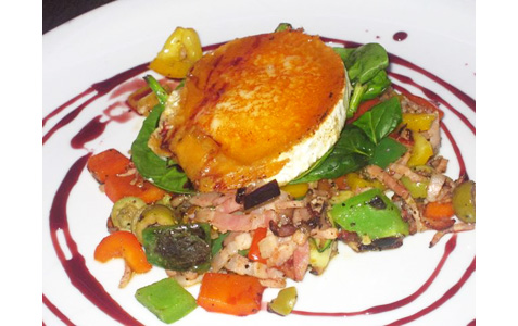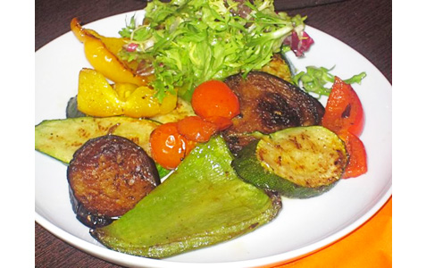 The cheese was warm, tangy, and relatively standard. Grilled vegetables underneath were very tasty. The red, green, and yellow peppers, along with olives, were mixed with a generous amount of smoked pork. Vegetarians beware.