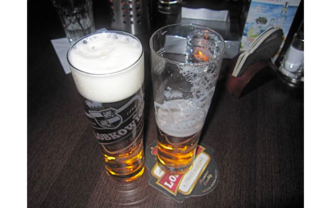 The first thing I noticed on the menu was that there were only two beers available on tap: a .25 liter glass of Heineken or a .3 liter glass of Lobkowicz (35 CZK). We had those, and it’s good beer.