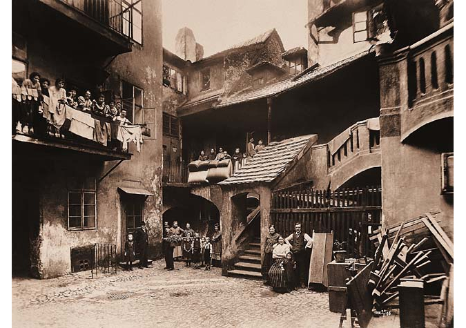 A newspaper article from Národní listy published in 1883 described the district as such: “We do not advise a citizen who has weak nerves to venture into the labyrinth of old black canals, covered with centuries of dirt, tumbledown houses or those hammered together from five, sometimes six to ten parts, each of which almost dates from another century – and beware anyone whose stomach is somewhat intolerant, go to the streets, where heavy, leaden air can be cut, simply go to our ghetto.”