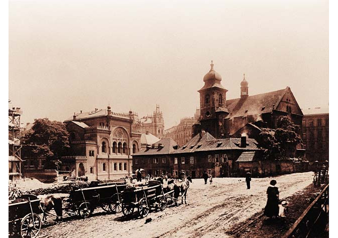 The demolition of houses near the Church of the Holy Spirit and the Spanish Synagogue. Photo, J. Kříženecký, 1912