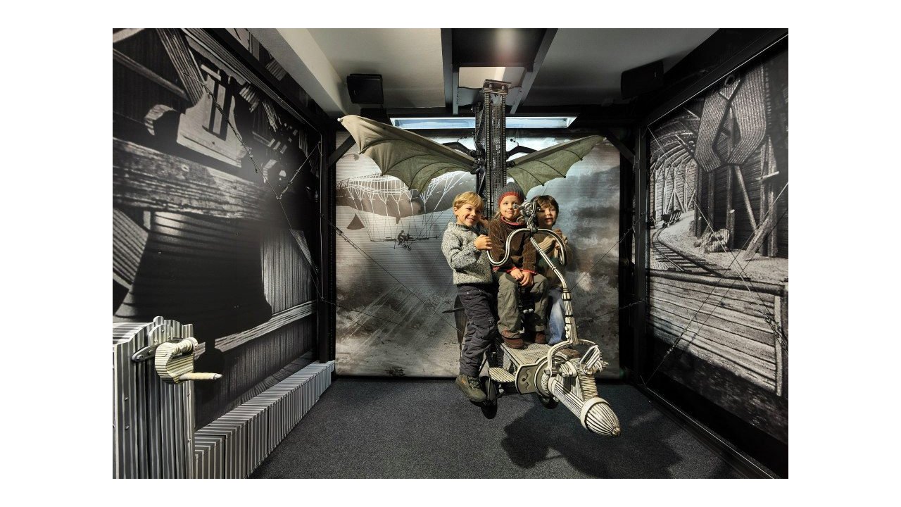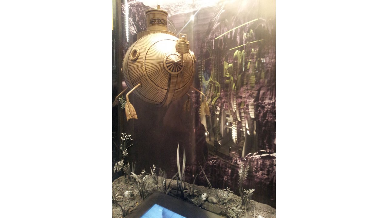 Further exhibits detail the features Baron Prášil (The Fabulous Baron Munchausen) and Vynález zkázy (The Fabulous World of Jules Verne) in similar manner (visitors can ride a replica of the Jules Verne flying machine while a friend cranks a background image!) About 75% percent of the museum is dedicated to these three films and the techniques they contain, with (Czech-language, though English subtitles are frequently provided on-screen) audio available through a single set of headphones at each exhibit (germaphobes take note…)