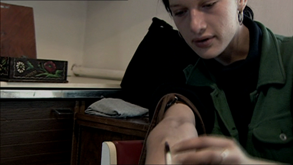 The film frequently raises another issue: that of the relationship between filmmaker and subject. Throughout the movie, Kateřina makes numerous trips to rehab centers, methadone clinics, and doctor’s offices; the help she receives (some of it, we witness, delivered with apathy) is never enough. The filmmakers, charting the downfall of this junkie for a decade-and-a-half, are also in a position to offer assistance; Kateřina’s life has been undoubtedly affected by the director, but their relationship is carefully obscured throughout the movie.