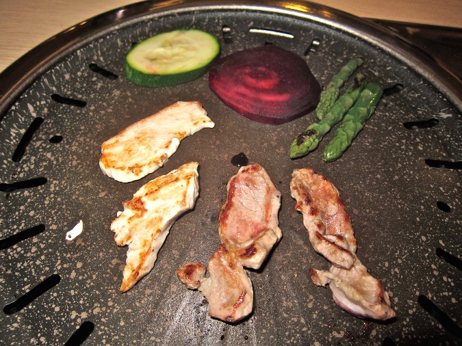 We sat down at a table without a grill for lunch one day. It was much too warm a day to be anywhere near hot metal. We’d come back and cook another time.