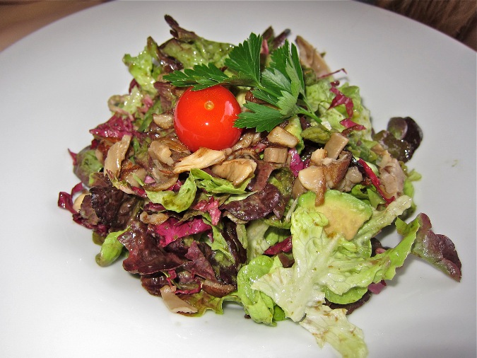 She dressed it herself with oil and vinegar and pronounced it very good. Everything was fresh, the avocado was ripe and it mixed together well.