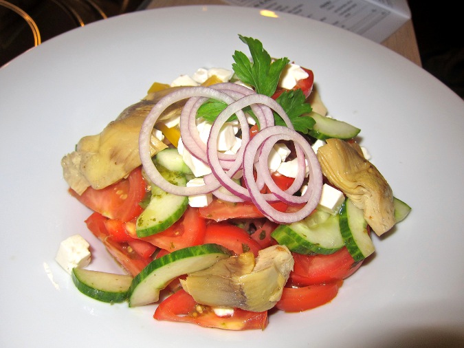 On the third visit, Miss P started with a vegetable salad with feta cheese, grilled artichokes, tomatoes, peppers, cucumber, and onion.