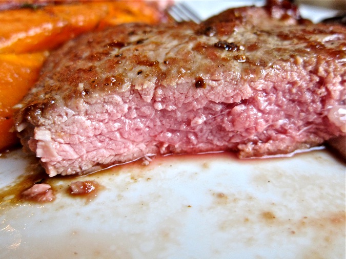 The beef was very flavorful and beautifully tender. Although rib eyes can be fatty, this one was on the lean side.
