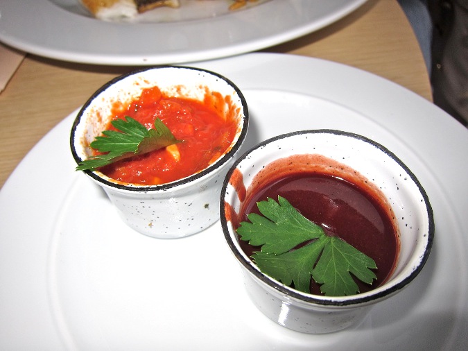 With the grilled meat and fish, you can choose two of the three sauces. We had to remind the waiter about this, so they arrived later. The sauces are hoisin, tomato salsa, or homemade tartar.