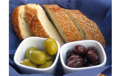 It came with excellent green olives stuffed with almonds and pit black olives. We both preferred the green.