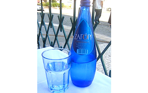 I ordered a large sparkling mineral water. We received a .75 liter blue bottle of Zagori, a Greek brand (95 CZK).