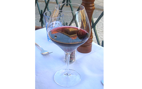 V generally likes to keep costs down and usually has decent luck ordering the house wine. So she got a .2 liter glass of the house red.