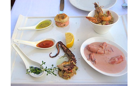 We decided to split an appetizer, the Thalasinos Mezes, a mixed seafood plate (320 CZK).