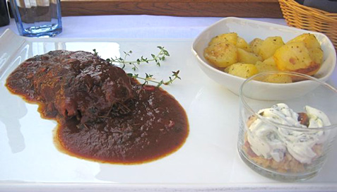 V ordered the lamb in a spicy tomato sauce with baked potatoes (350 CZK). She loved this dish.