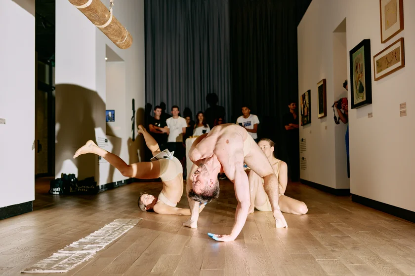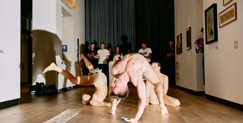 That multidimensional approach is reflected in the thematic programming surrounding each new exhibition of visual art. “Lost in the Moment that Follows,” the exhibition of Ovidiu Șandor’s private collection, is accompanied by a handful of performances of “Intervention Is Enough Evidence. Finally,” the site-specific performance directed by Romanian artist Alex Miritziu.