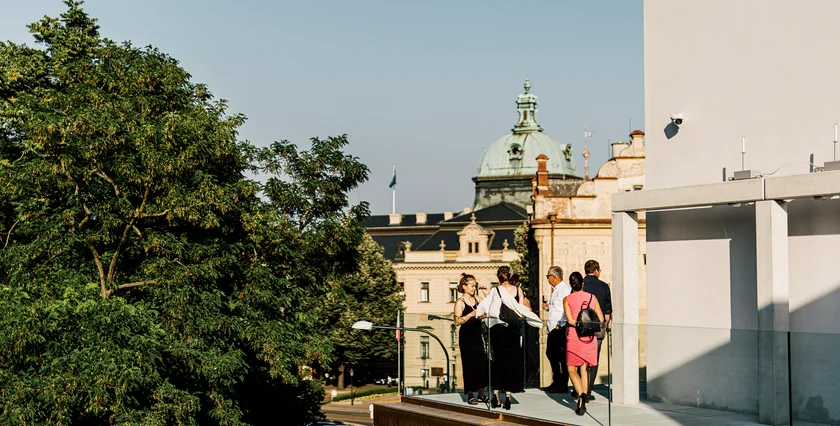 But in the 18 months since the space first opened to the public, Prague’s Kunsthalle has taken shape as something else: not just an exhibition space for visual art, but a performance venue, cinema, and lecture hall—and the home of a restaurant and a cafe with a view of Prague Castle, to boot.