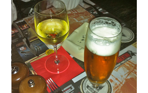 I started with a .4 liter glass of Pilsner Urquell (80 CZK). My Friend had a .1 liter glass of the house white wine (99 CZK).