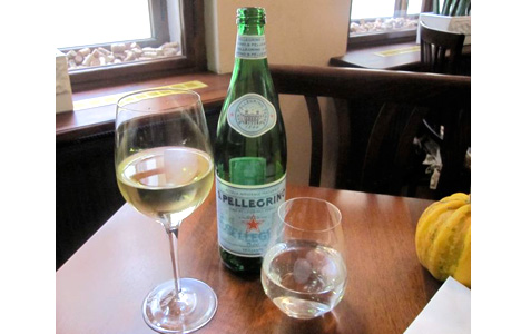 V thought it was just OK. For me, it was too fruity, sweet, and one-dimensional. I didn’t like it at all. We shared a big bottle of San Pellegrino mineral water (95 CZK).