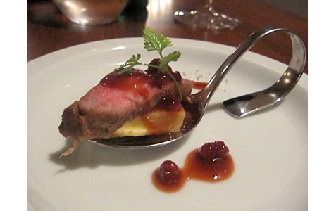 I received an amuse bouche of beef tagliata with grilled polenta and cranberries.
