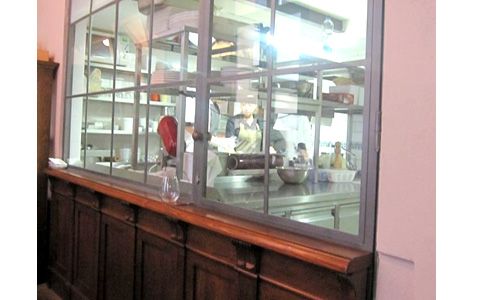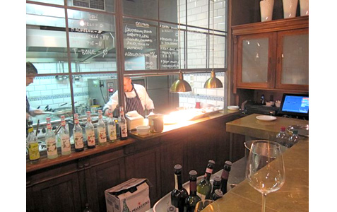 When we returned from our walk, our table still was not ready. We were directed to the “bar,” a tight space by the window to the kitchen which gives the restaurant its name.