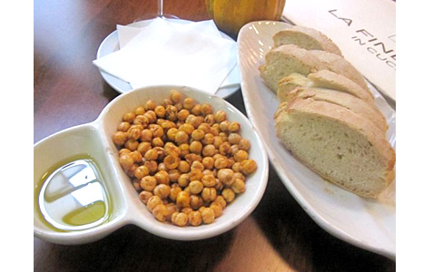 To start off, we got crusty, chewy bread. It came with good olive oil and fried chickpeas.