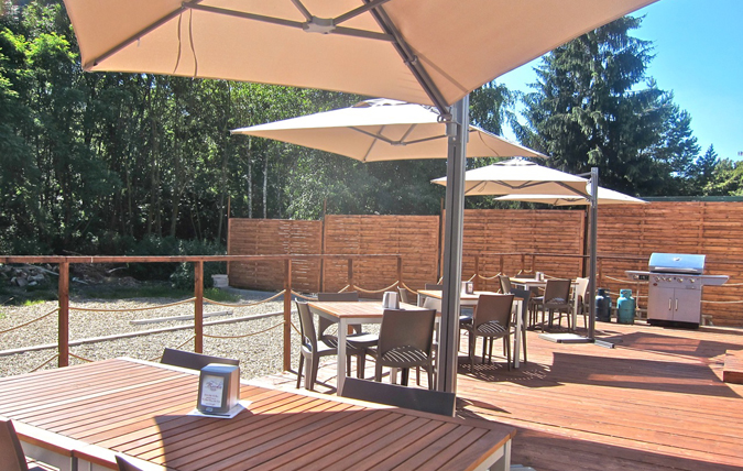 You can look out the window and see the Mercedes, BMWs, Audis, Porsches, and Volvos (all these were there when we visited). In warmer months, it is nice to sit out on the newly-built rear deck, where they also have a grill.