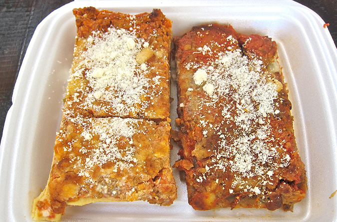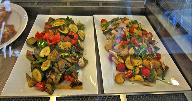 Everyone had a good feeling about this restaurant and shop. And to keep feeling good, I took some of their food home with me. I bought portions of the eggplant lasagne (140 CZK) and the meat lasagne (179 CZK).