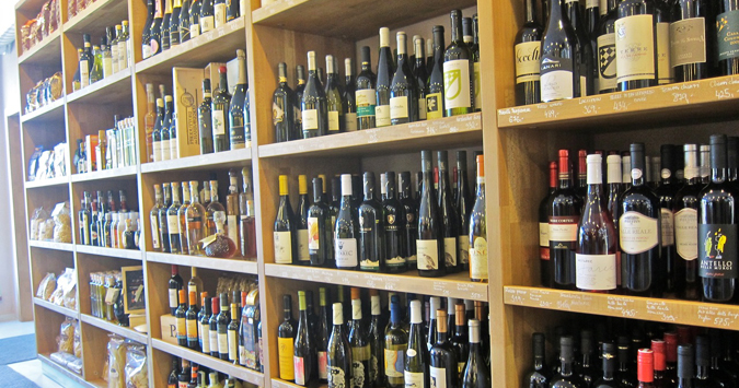 Much of the floor space is devoted to the food shop. There is a selection of Italian wines.