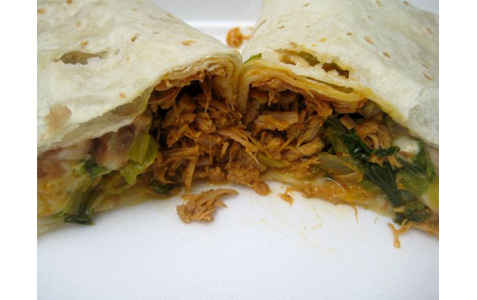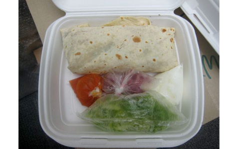 Next to a rolled flour tortilla were neatly bagged side items: lettuce, sour cream, sour red onion, and a salsa that seemed like watery tomato puree with a good dose of chili. The bags didn’t leak!