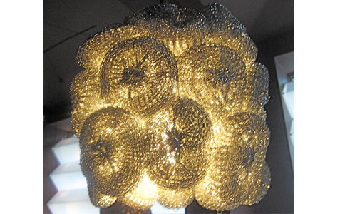 And then there are the light fixtures. The shades are made from steel wool.