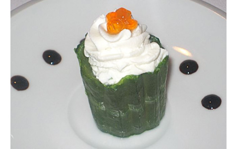 Then came an amuse bouche. It was a partially cooked cucumber topped with something like cream cheese, and a few caviar eggs.