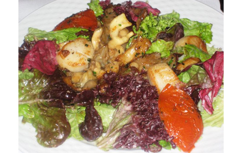 V ordered the Cornichon Salad with scallop and pleurotte mushrooms (260 CZK).