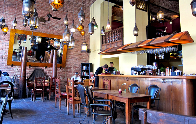 The second floor overlooking it is the non-smoking section. There’s also a section that used to be a furniture shop that has converted for use as restaurant space.