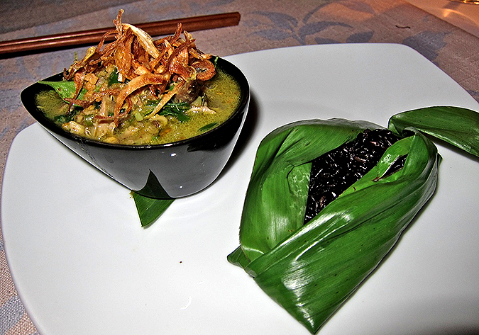 Course 7: Jungle Curry. The is a photo from the first visit. On the second, the black rice did not come in the banana leaf. This dish was also excellent both times.