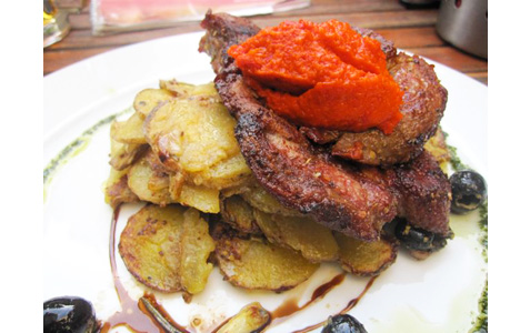 It got dryer toward the less fatty parts in the middle, but that’s about it. There was a big dollop of ajvar on top to help moisten it up.