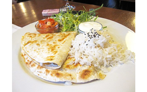 My friend wasn’t too hungry and ordered the cheddar and jalapeno quesadilla (125 CZK).