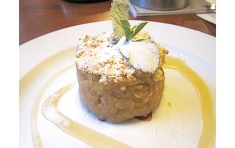 The finely chopped apple, served warm, was topped with cake crumbs, and powdered sugar. It was very sweet, but here, I minded less. There was a barely detectable amount of rum. It was something like an apple strudel without all the dough.