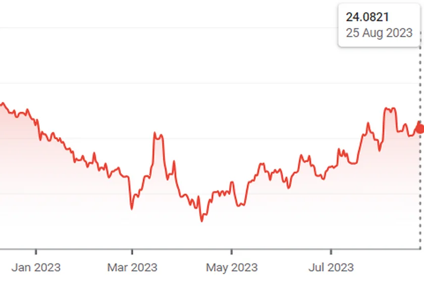 Jakub Seidler, the chief economist of the Czech Banking Association, told Lidovky.cz that the likelihood of the exchange rate once again dropping below CZK 24 to EUR 1 is currently low. At present, the exchange rate is around CZK 24.1 to EUR 1 and is on a gradually deprecating trend. At its 2023 peak (in mid-April), it was at around CZK 23.3 to EUR 1.