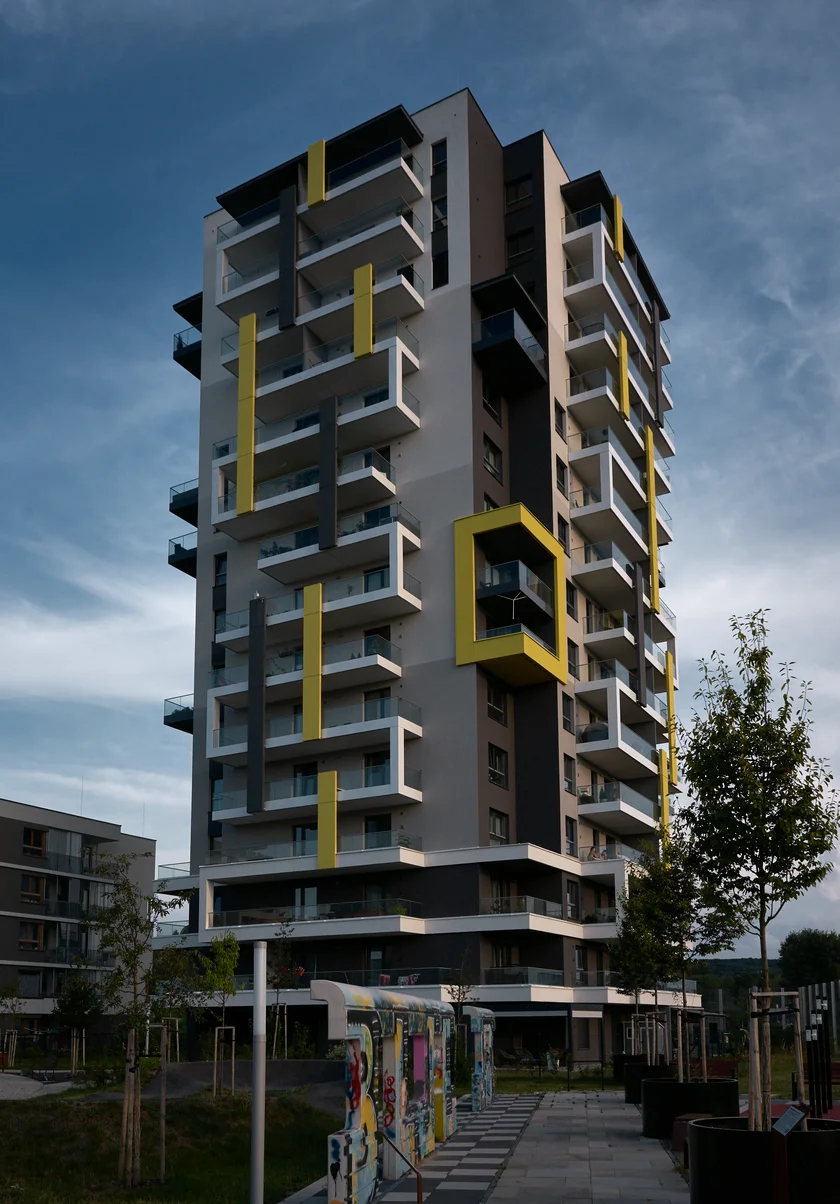 Through their comprehensive urban design project, including the Modřanka Residence, the low-rise viladomas Elča and Emča, and the pleasantly scaled apartment buildings Rarach and Hübner A and B, LOXIA transformed the brownfield into a vibrant new neighborhood.