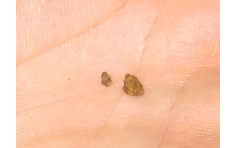 “There’s something hard in there,” he said. He reached into his mouth, pulled something out, and when he cleared the food a way we saw them. Two tiny, brown, angular stones.