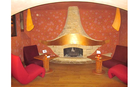 Mr. Big suggested booking a table downstairs. It’s even nicer down there. There’s a golden fireplace and a sitting area with funky furniture in the back.