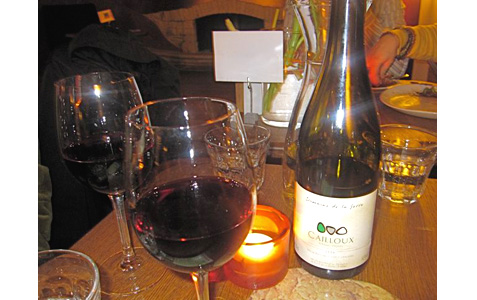 We looked over the very international wine list with very reasonably priced bottles. We chose a French organic red. It was the most expensive wine they had, the Domaine de la Serre Vin de Pays des Côtes Catalanes Cailloux Vielles Vignes (450 CZK).